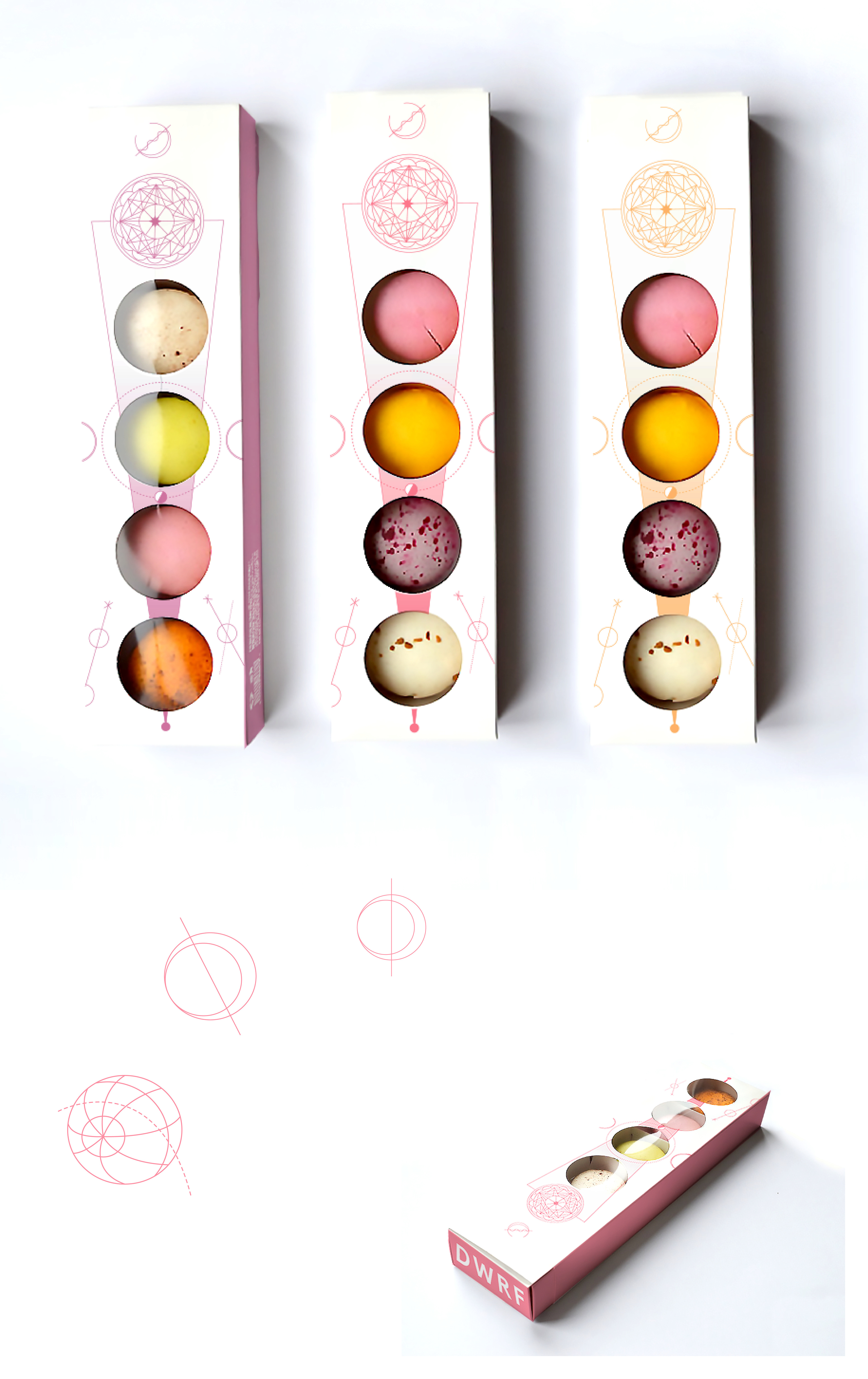 Macaron branding and packaging inspired by dwarf planets, the solar system and astronomy illustration.