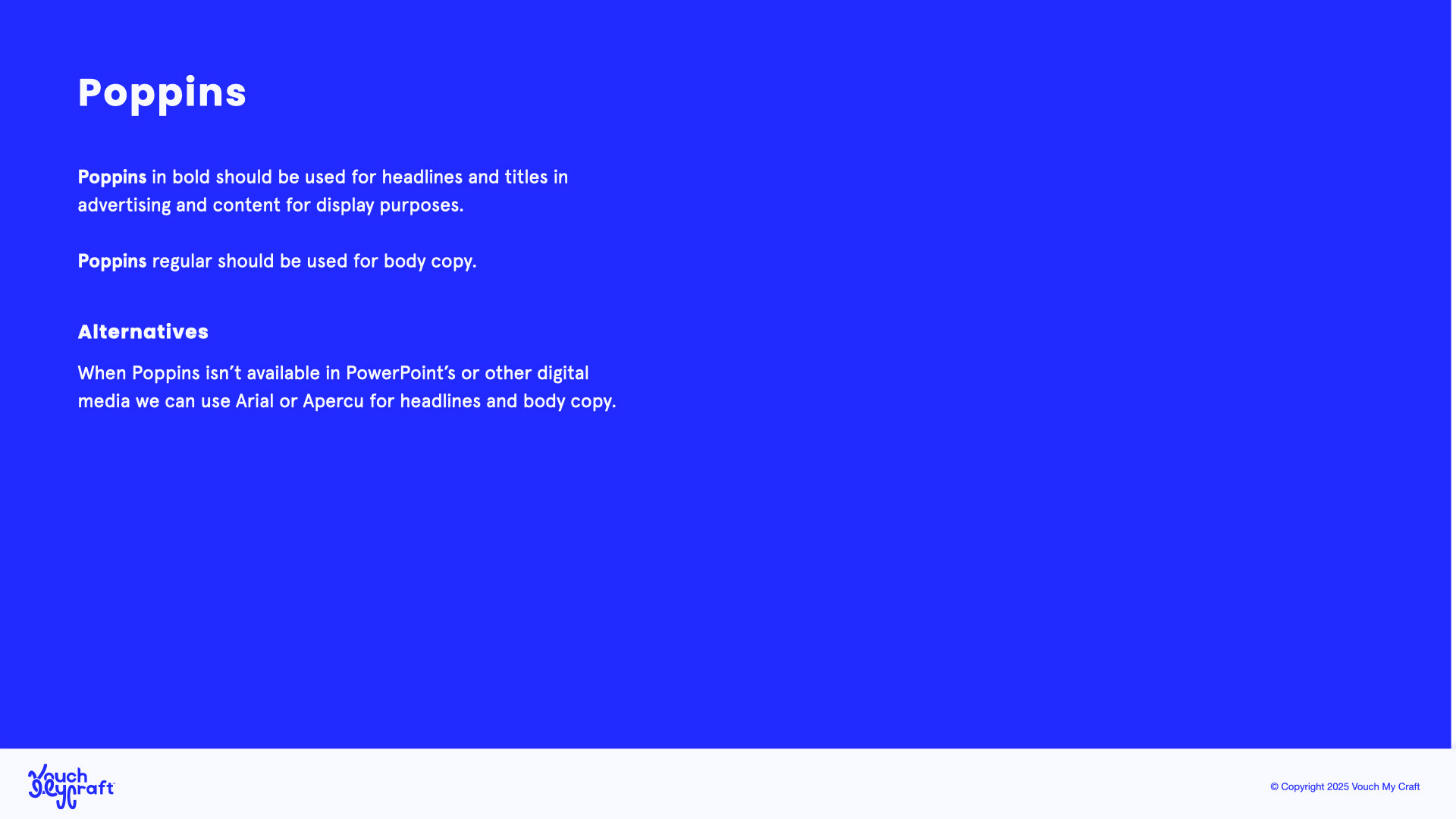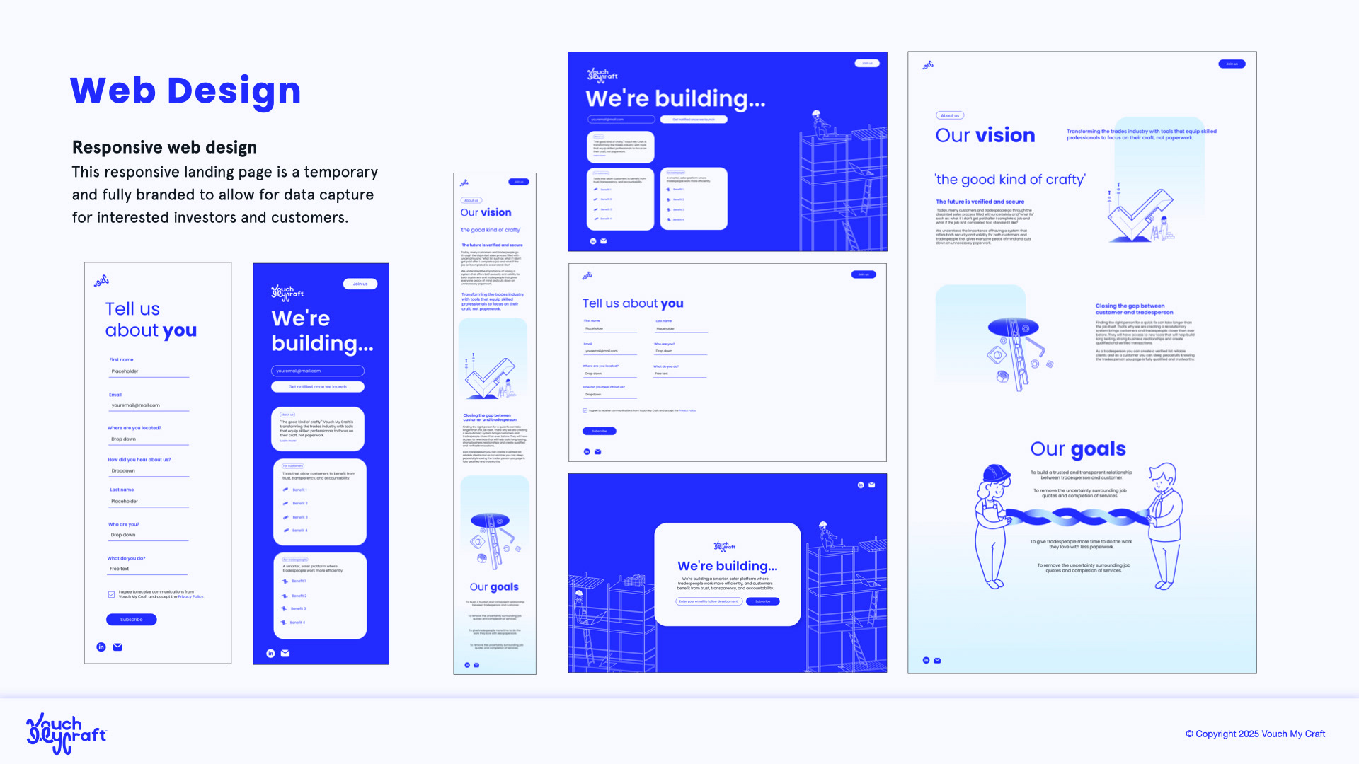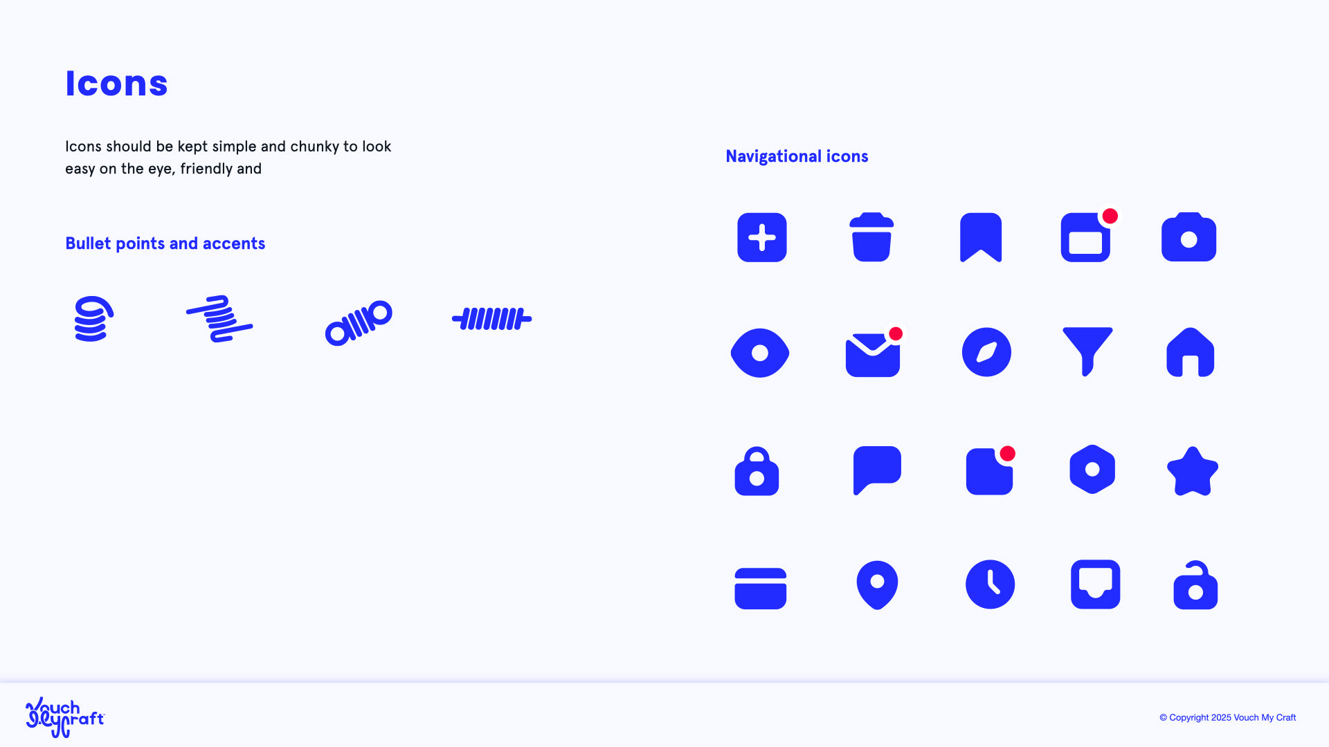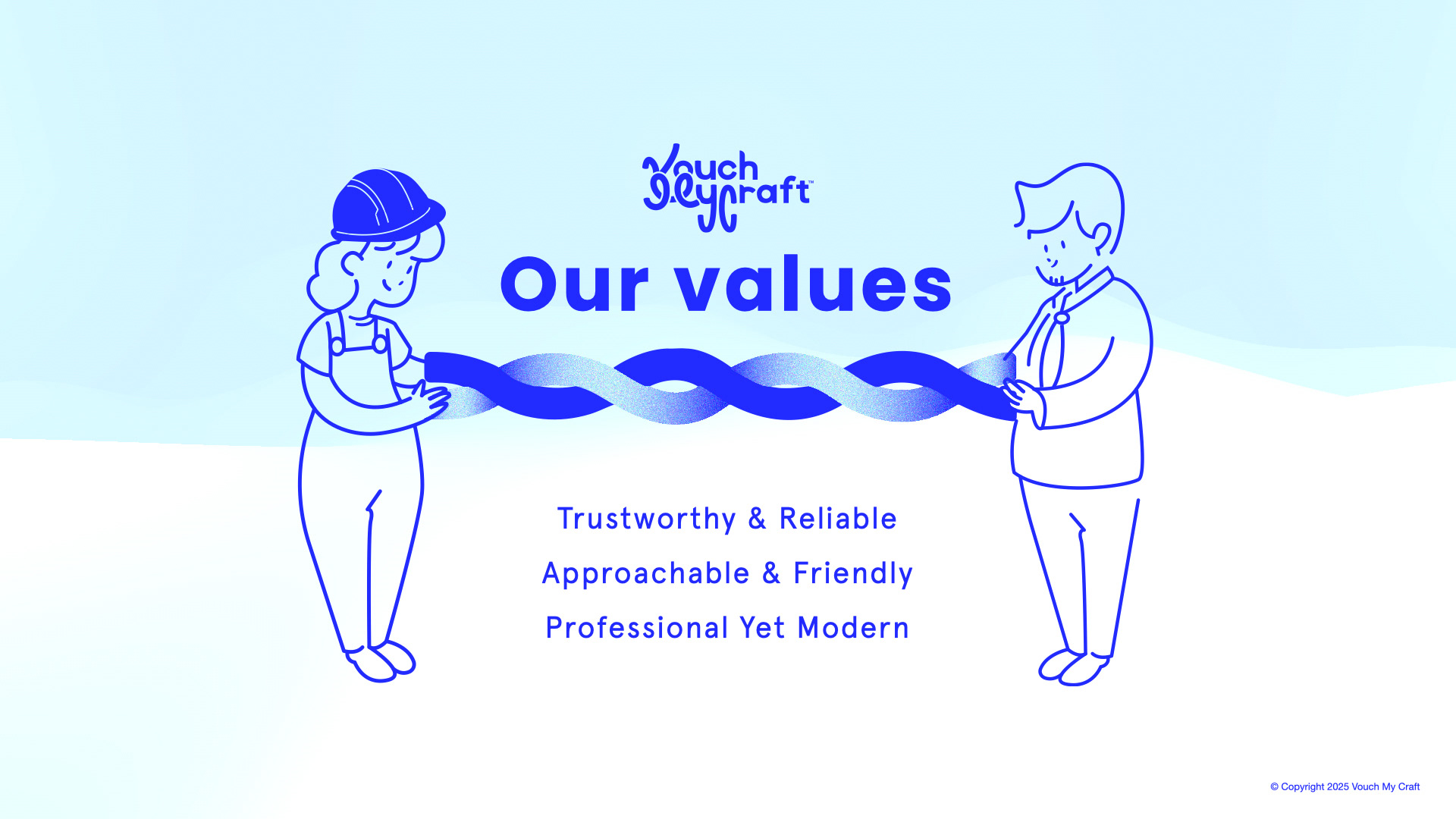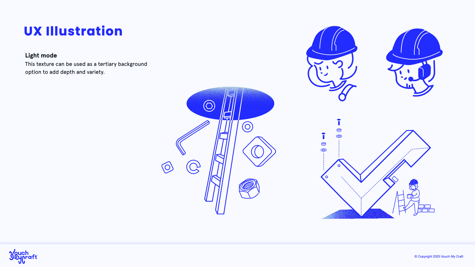 These are brand design guidelines for a new innovative tech start-up within the skilled trades/ home services market, called Vouch My Craft. The visual concept is inspired by turning screws, wire and nuts and bolts, symbolising the people within the industry as well as the 'do-it-yourself' nature of the product design.
